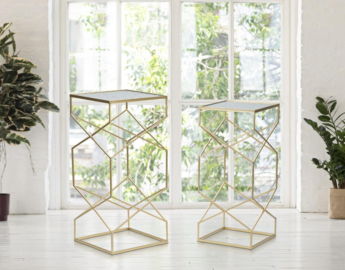- Ruudukujuline ablaua komplekt kuldsest metallist loob sügavustunde.