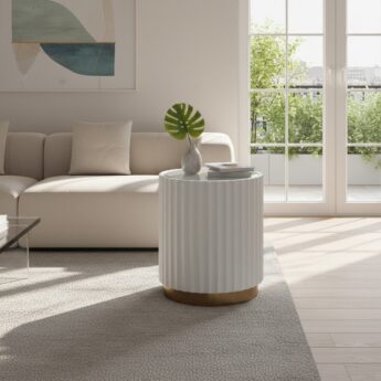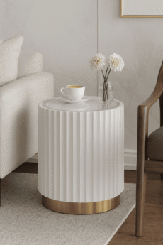 - Elegantne ümmargune abilaud ühendab määrdunudvalge ja kuldse sära