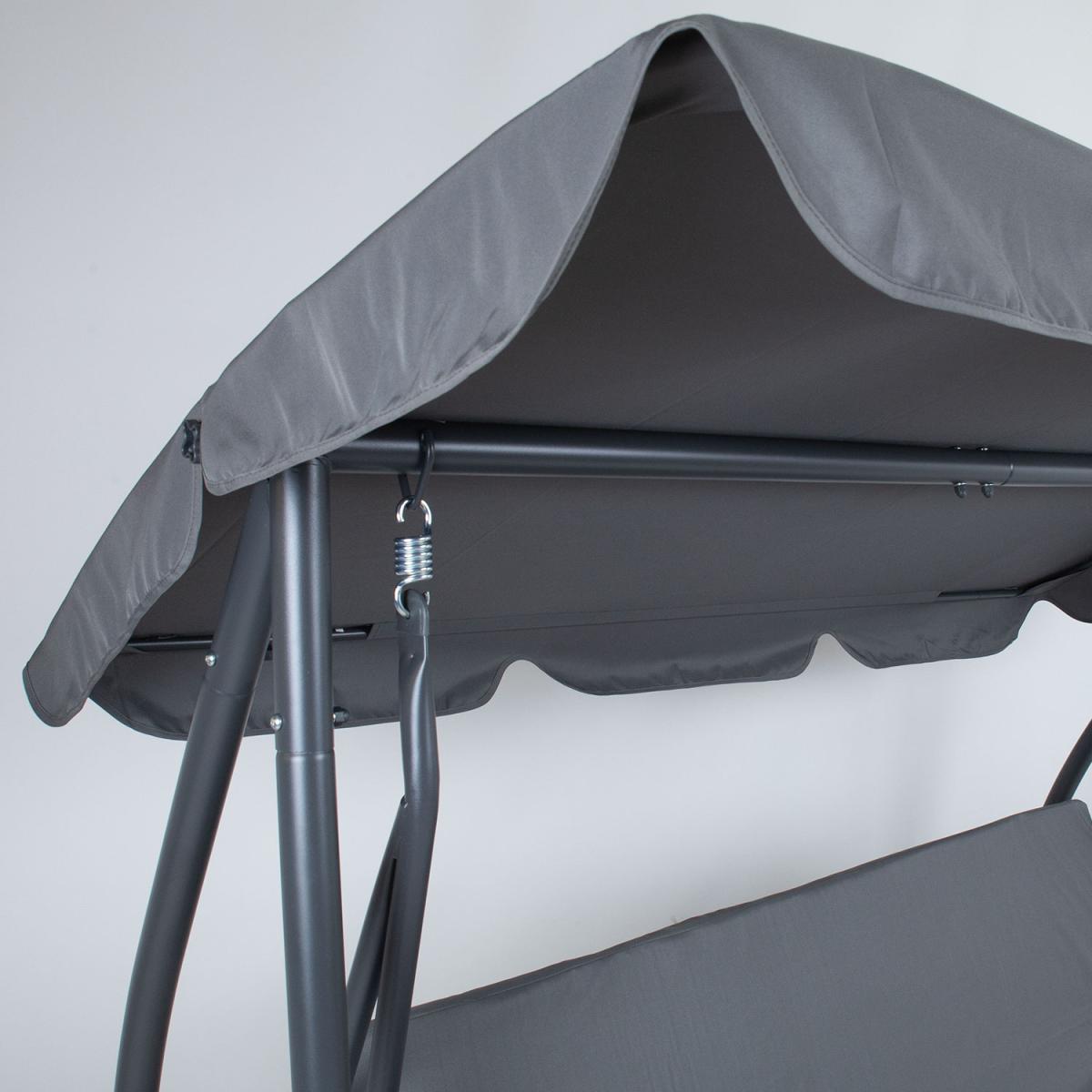 Kiige katuseraam on kaetud halli polüesterkangaga (180g/m²). Katuse kaldenurk on reguleeritav.