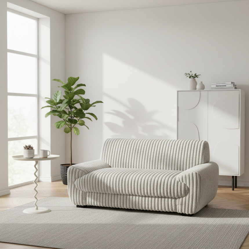 Osillo on diivan, mis ühendab mugavuse ja praktilisuse kaasaegse disainiga. Lihtne, kandiline kuju ja tasakaalustatud proportsioonid loovad rahuliku silueti, mida täiendab pehme, sooneline helebeež kangas, lisades soojust ja õrnust