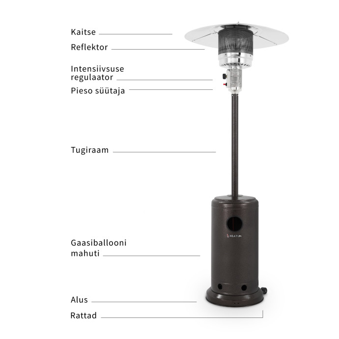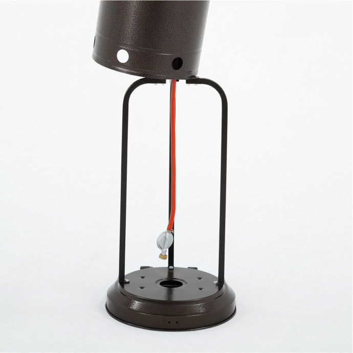 - Avalikes kohtades kasutamiseks on eriti mugav, et gaasiballoon on kindlalt kaitstud, nii et juurdepääsuks tuleb kogu kütteseadme alumine korpus üles tõsta.Â