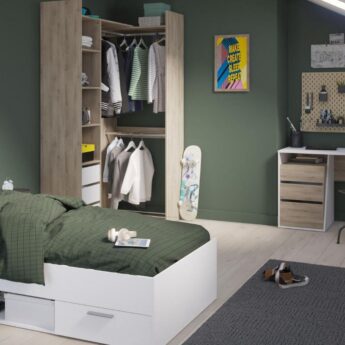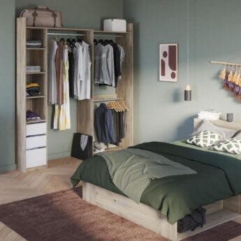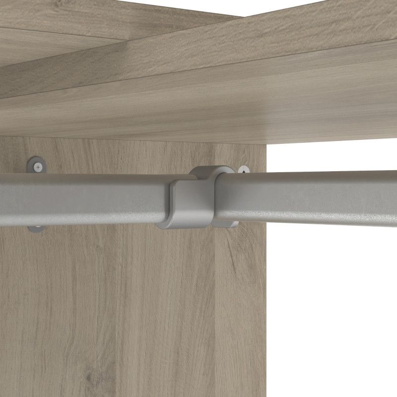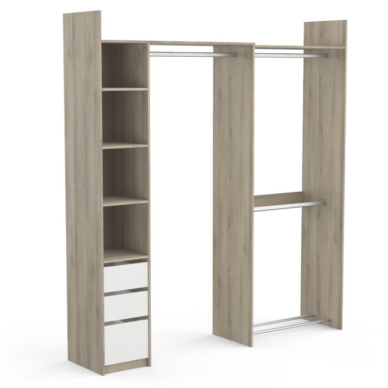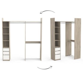 Garderoob Swing kohandub täielikult teie vajadustega. Sellel on võimalikud kaks erinevat paigutus võimalust- sirge või nurga all. Reguleeritava laiusega saab see hõlpsasti sobitada igasse magamistuppa, esikusse või garderoobi. Hele puiduvarjund koos valgega loob moodsa kahetoonilise efekti, mis sobib suurepäraselt nii Skandinaavia kui ka kaasaegse sisekujundusega.