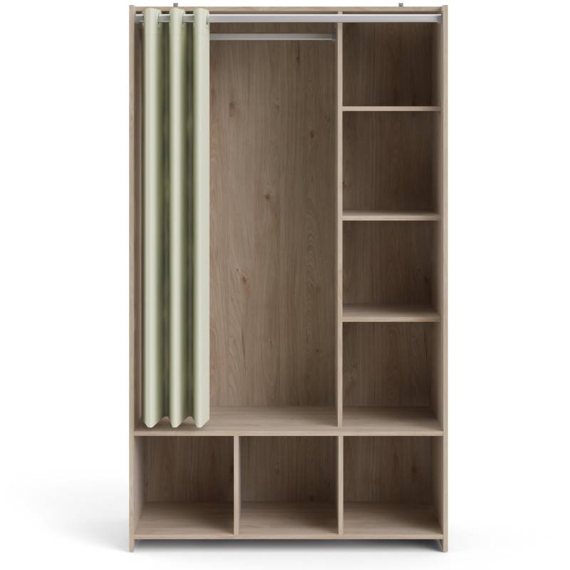 Riidekapp Kit on valmistatud kvaliteetsest mööbliplaadist. Uste asemel on kardin. Sisu on jagatud kaheks. Kitsamas osas on neli vaheriiulit, millest kaks on reguleeritava kõrgusega. Laiemas osas on üks lai ülariiul ja selle all riidepuutoru.