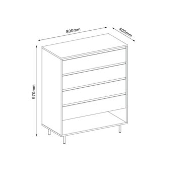 Kummut HERTA 4-sahtliga 80x40xH97cm, valge/hele puit.