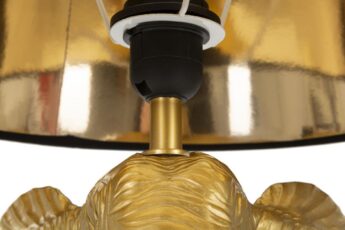 - Mustast metallist laualamp kuldse elevandipea ja musta varjuga.