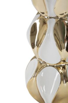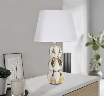 - Valge ja kuldne keraamiline laualamp kattuvate kerade kujuga.