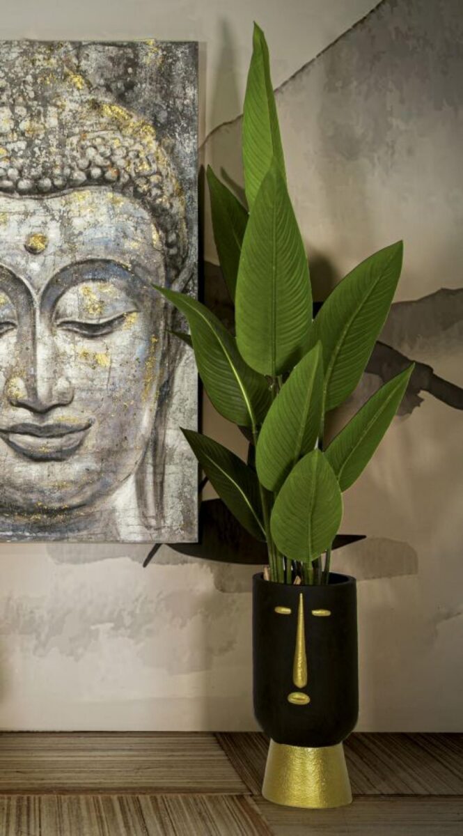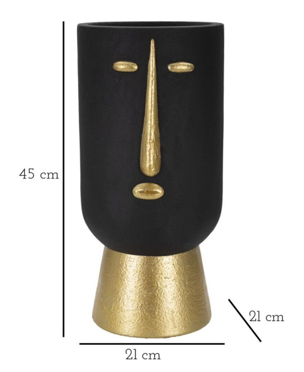 - Dekoratiivne lillepott stiliseeritud hõimunäoga ja kuldsete aktsentidega.