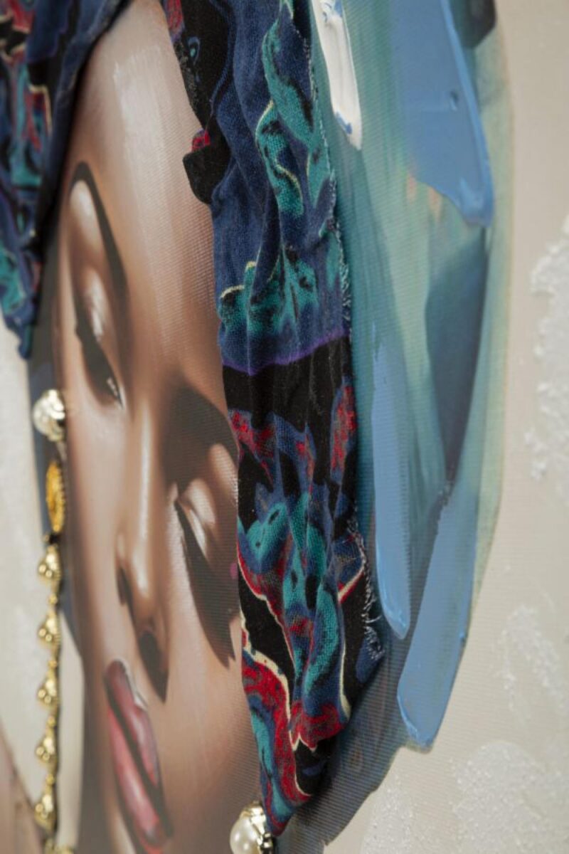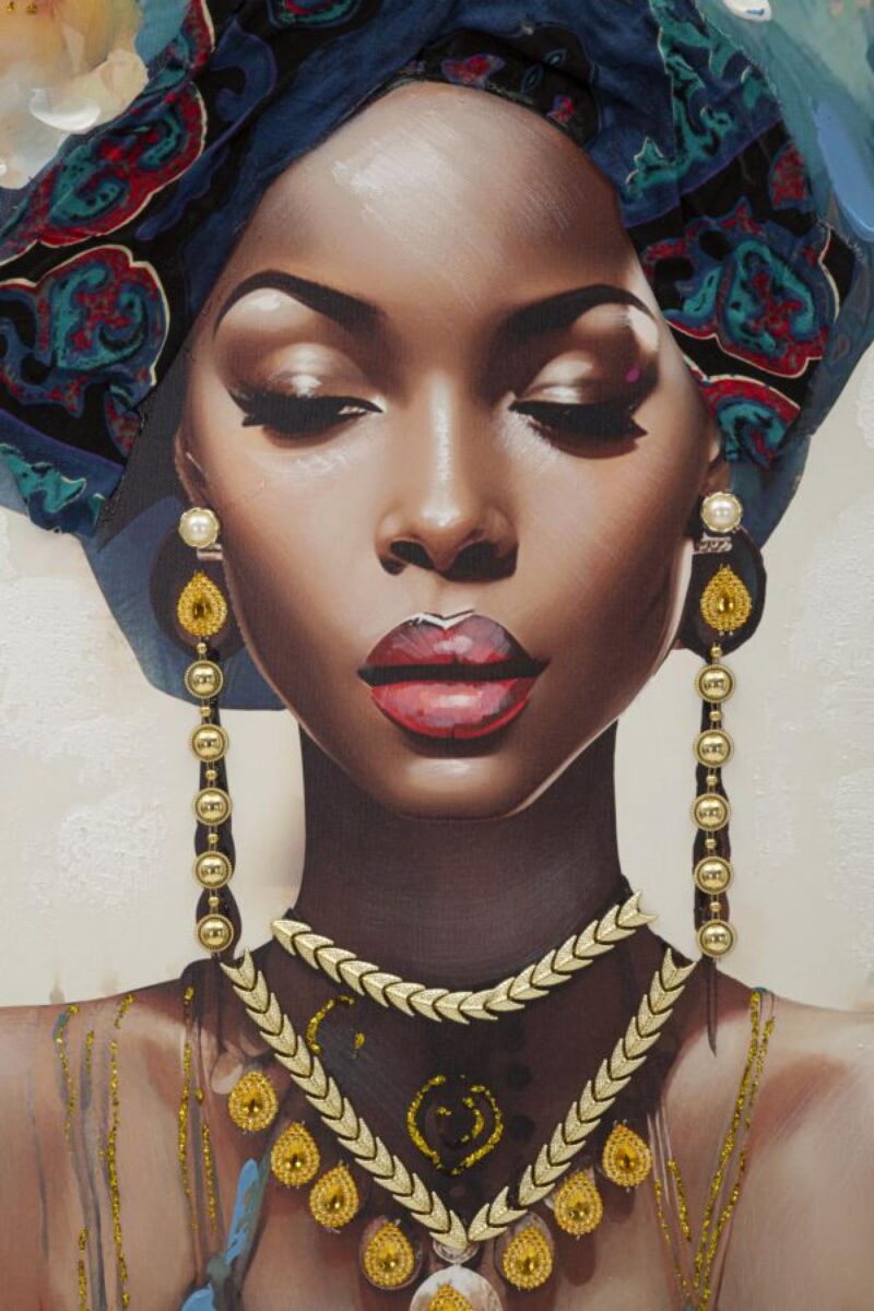 - Naine on kujutatud traditsioonilises riietuses ja turbaniga.