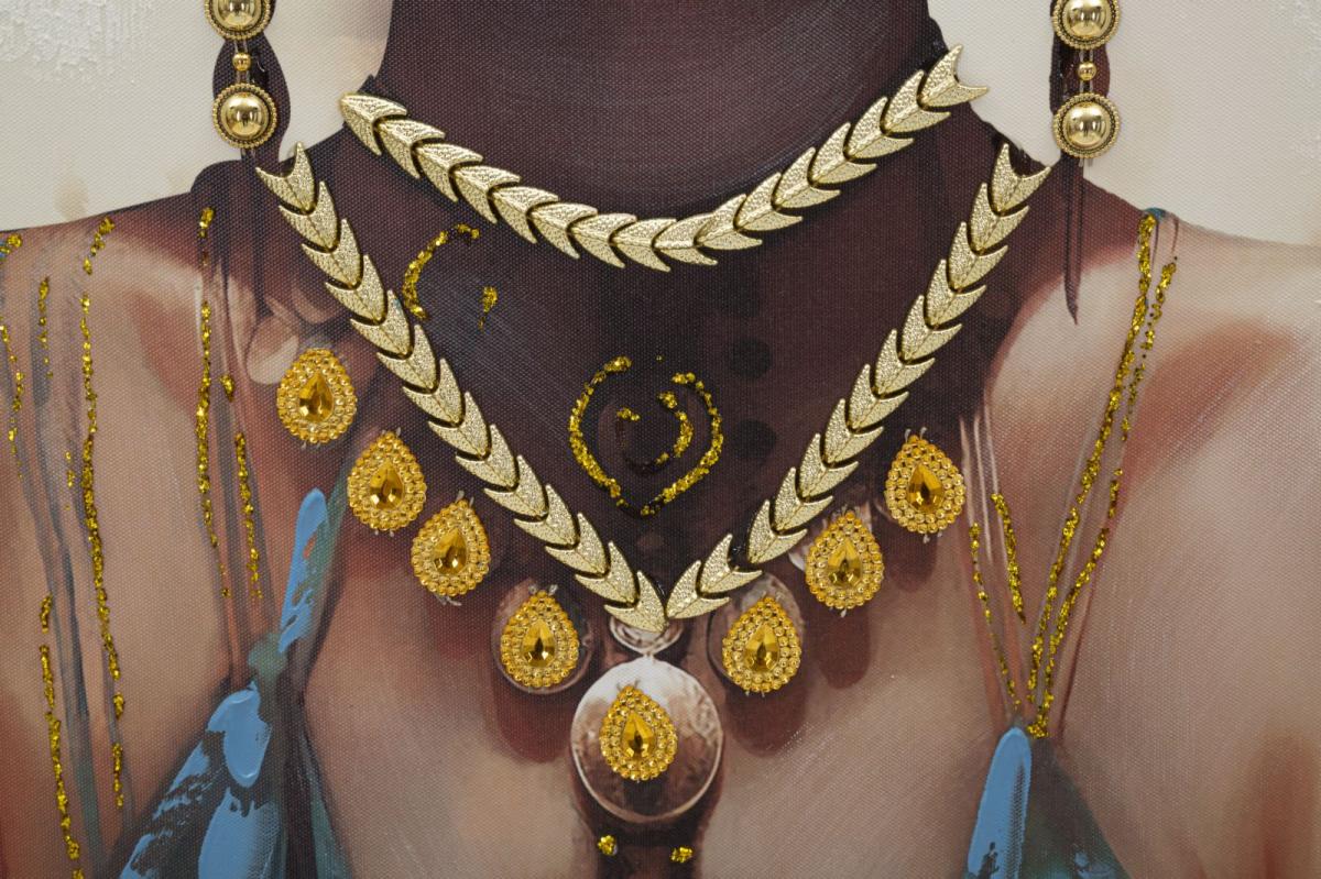 - Kuldne metallraam täiendab teost luksusliku ja stiilse aktsendiga.