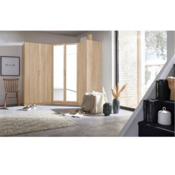 Nurgakapp on valmistatud vastupidavast mööbliplaadist. Kapil on kokku kaheksa vaheiiulit ning kaks riidepuutoru. Käepidemed on värvitud plastikust.