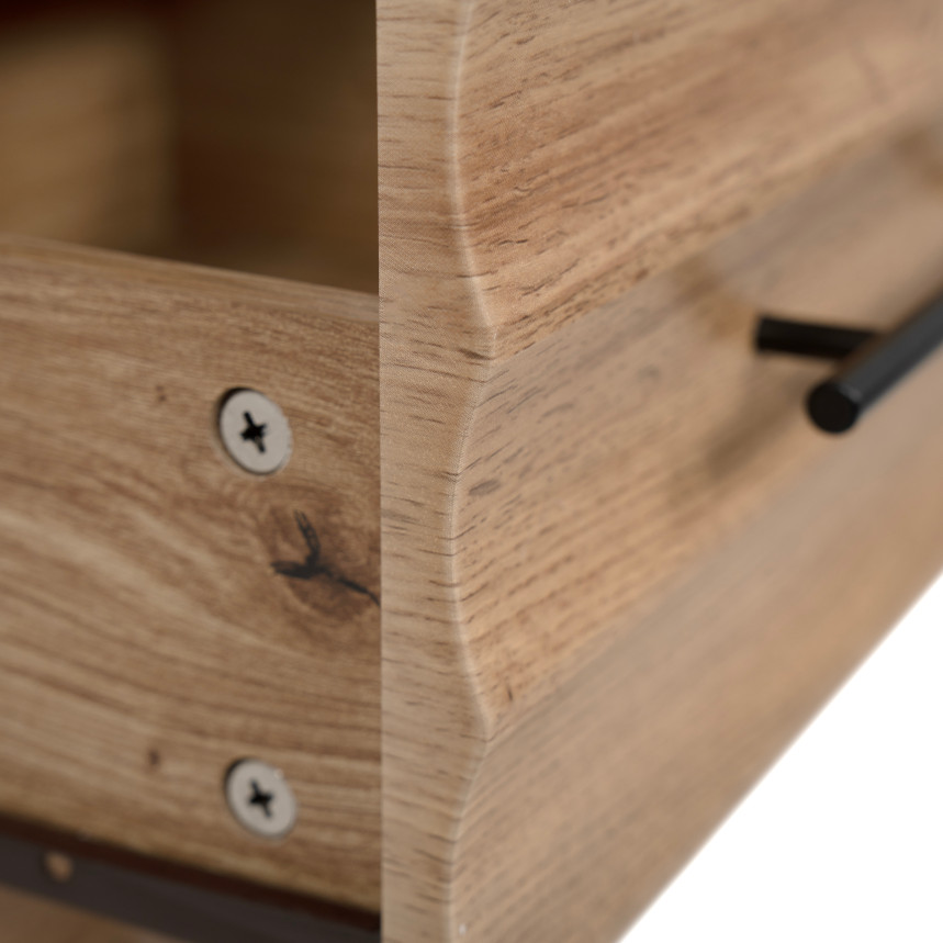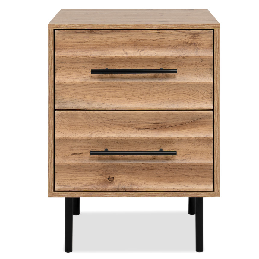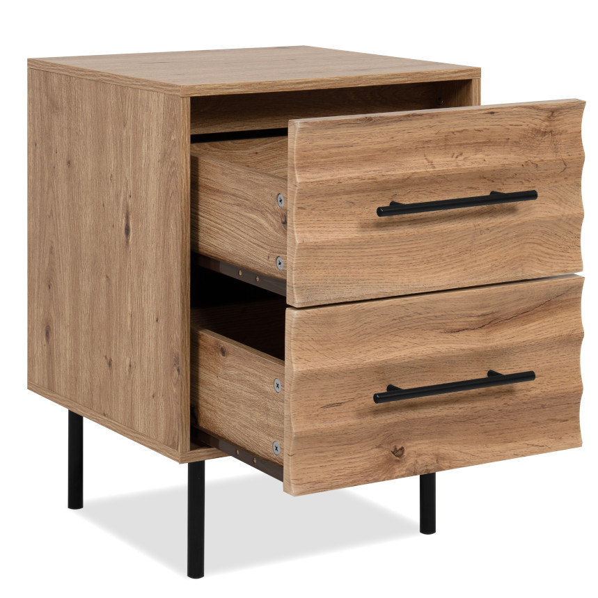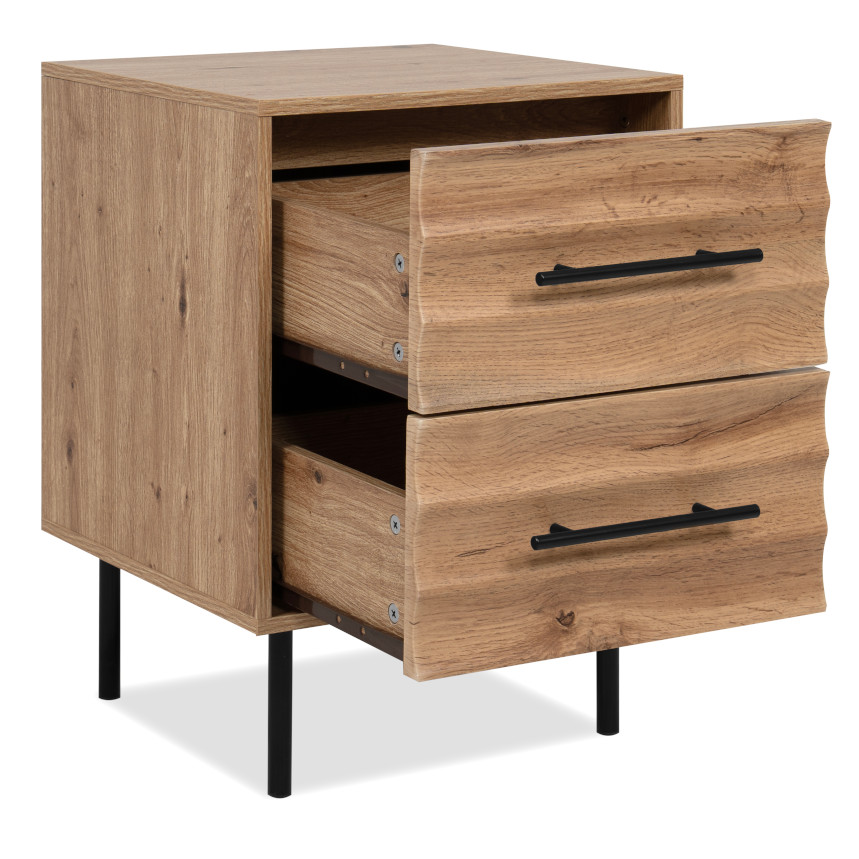 Öökapp on valmistatud mööbliplaadist ning saadaval neljas erinevas viimistluses. Käepidemed ja jalad metallist. Jala kõrgus 14 cm. Kaks sahtlit liiguvad metallsiinidel.