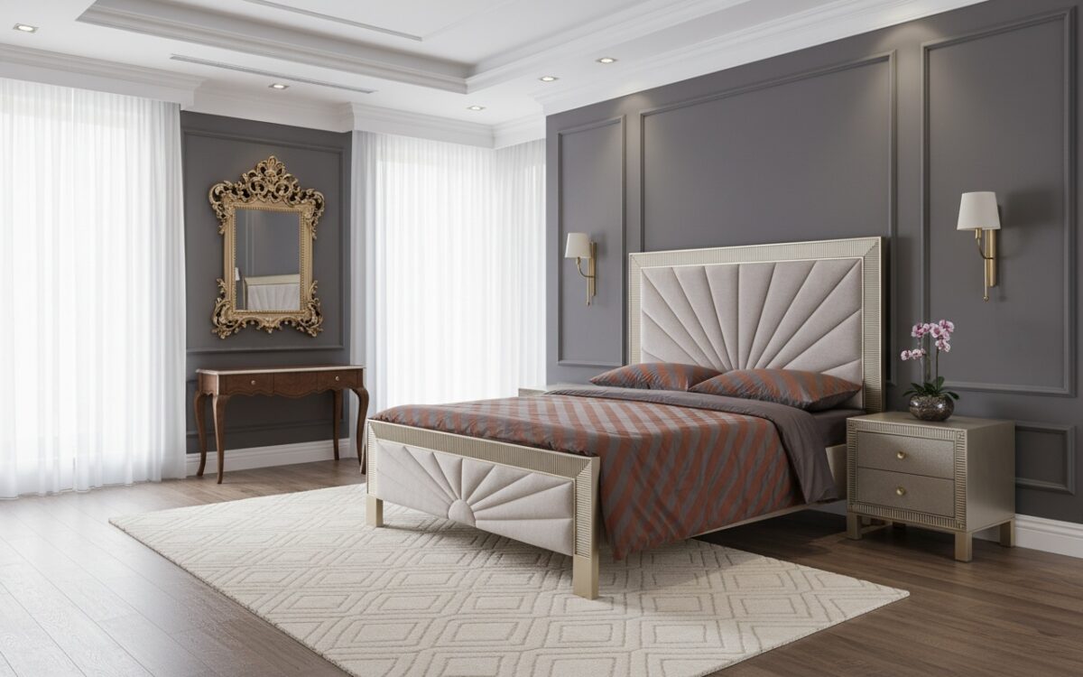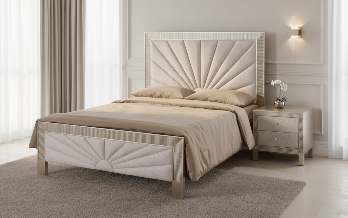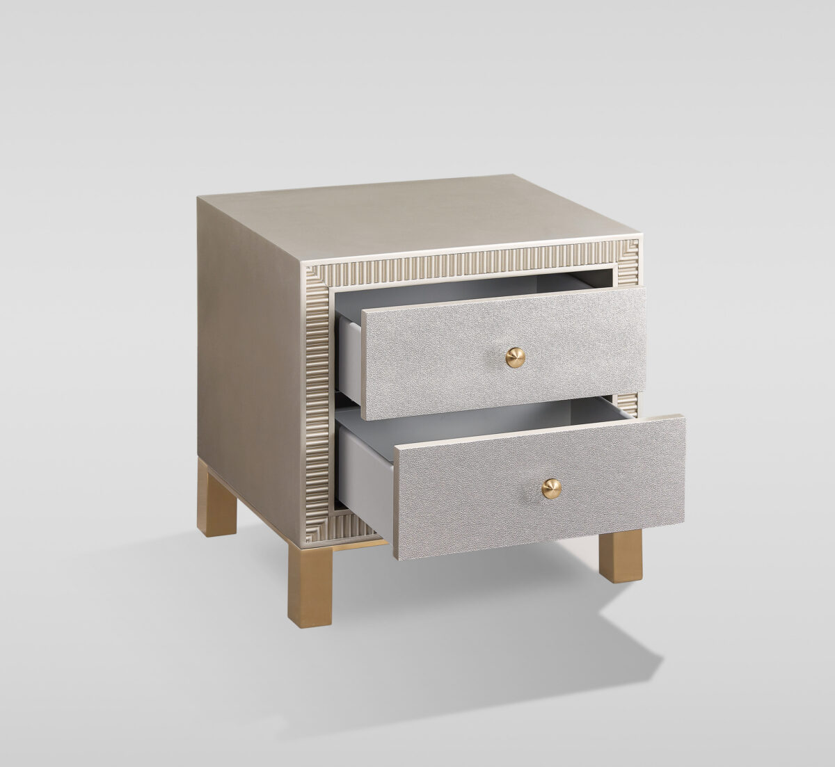 - Šampanjakuldne öökapp tekstuurse viimistluse ja metalljalgadega.