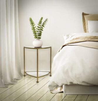 - Kuldne metallist öökapp koos peegelriiuliga.