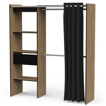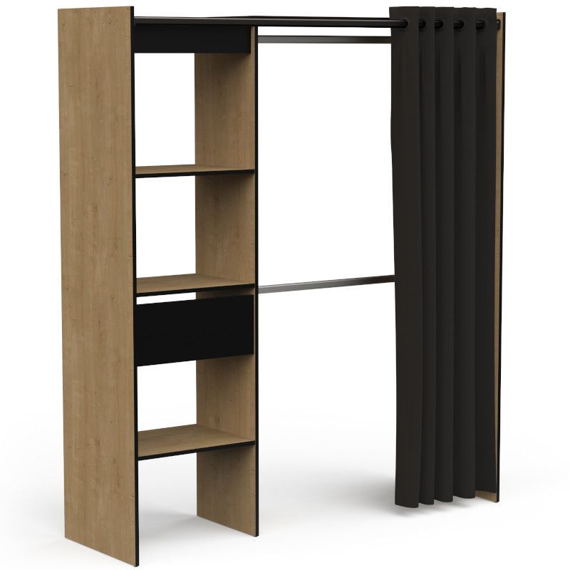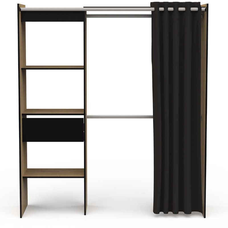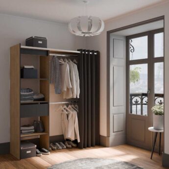 Garderoobisüsteem on pikendatav 114-168 cm. Pikendamine on ülemise plaadi abil, riidepuutoru tuleb ise soovitud mõõtu lõigata. Sellel on kolm fikseeritud riiulit, mõõtmed 56×40 cm, üks sahtel ning kaks metallist riidepuutoru. Komplekti kuulub ka kardin, mis aitab garderoobi sisu vajadusel privaatseks teha.
