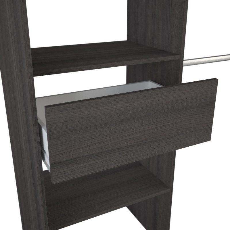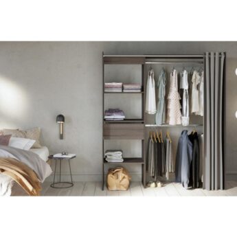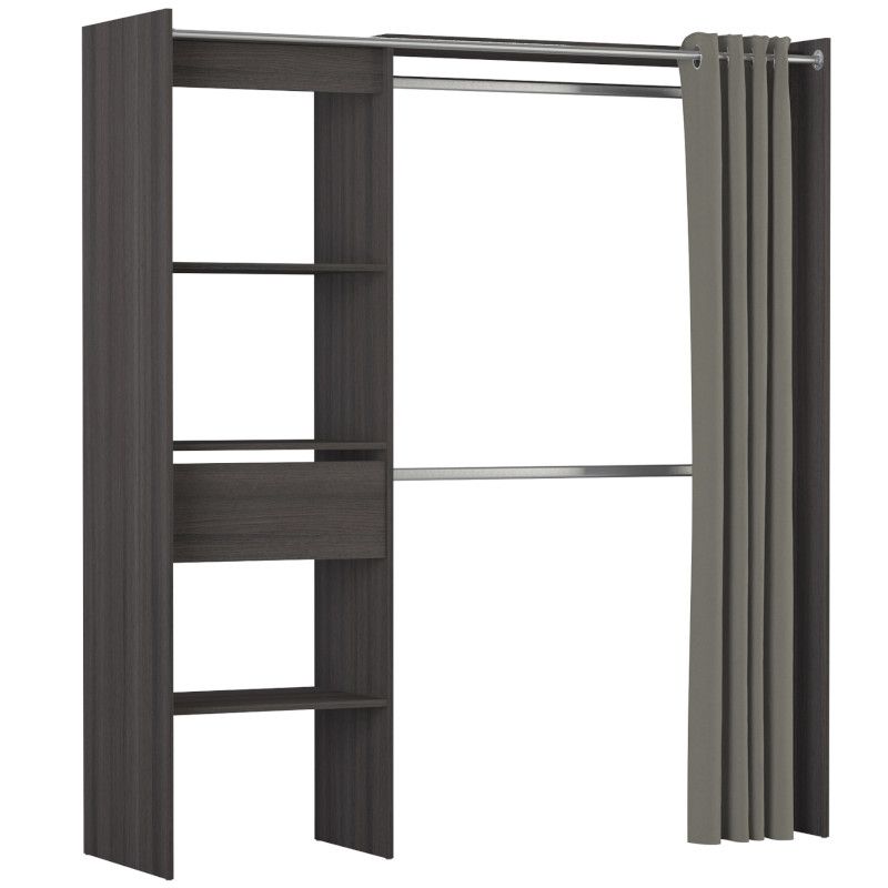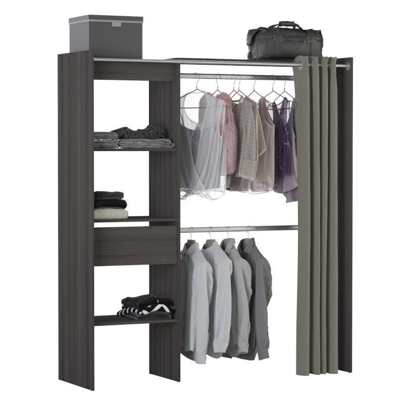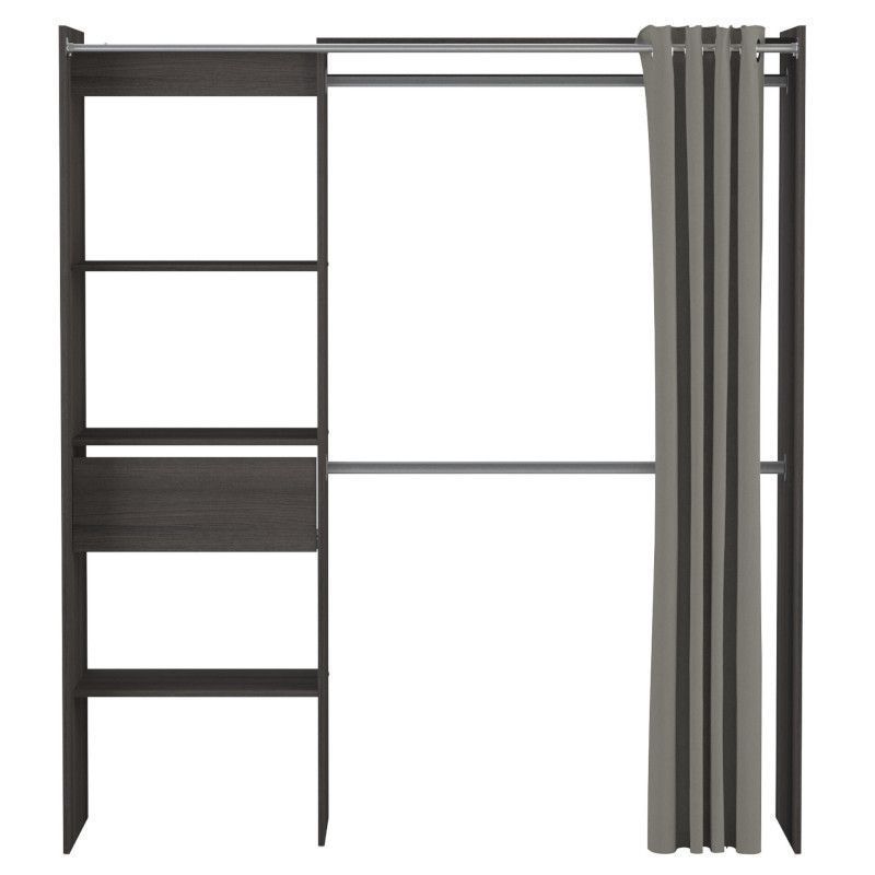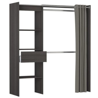 Garderoobisüsteem on pikendatav 114-168 cm. Pikendamine on ülemise plaadi abil, riidepuutoru tuleb ise soovitud mõõtu lõigata. Sellel on kolm fikseeritud riiulit, mõõtmed 57×40 cm, üks sahtel ning kaks metallist riidepuutoru. Komplekti kuulub ka kardin, mis aitab garderoobi sisu vajadusel privaatseks teha.