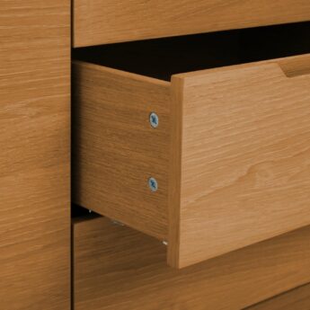 - Kummut on valmistatud mööbliplaadist, kaetud tammespooniga
