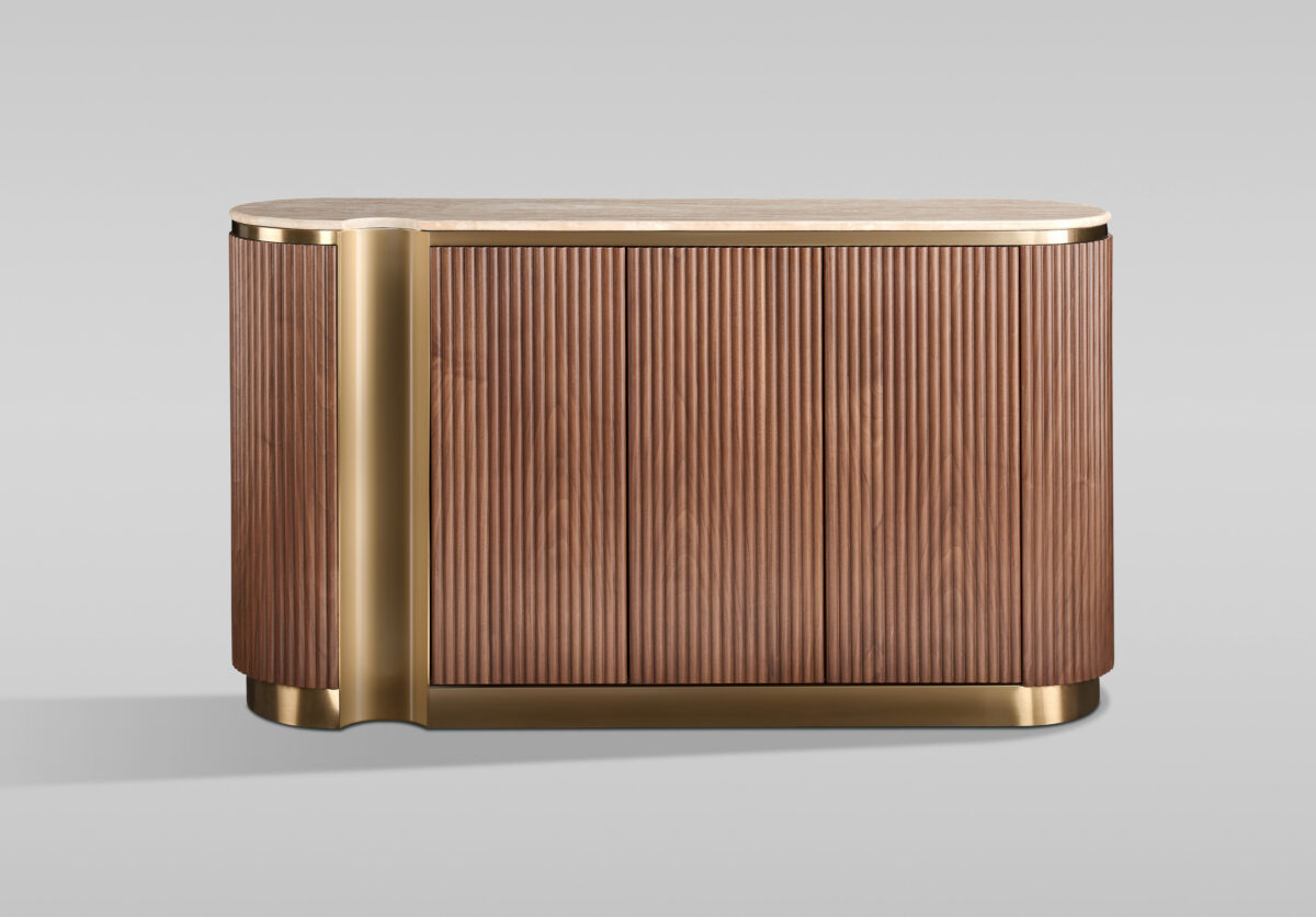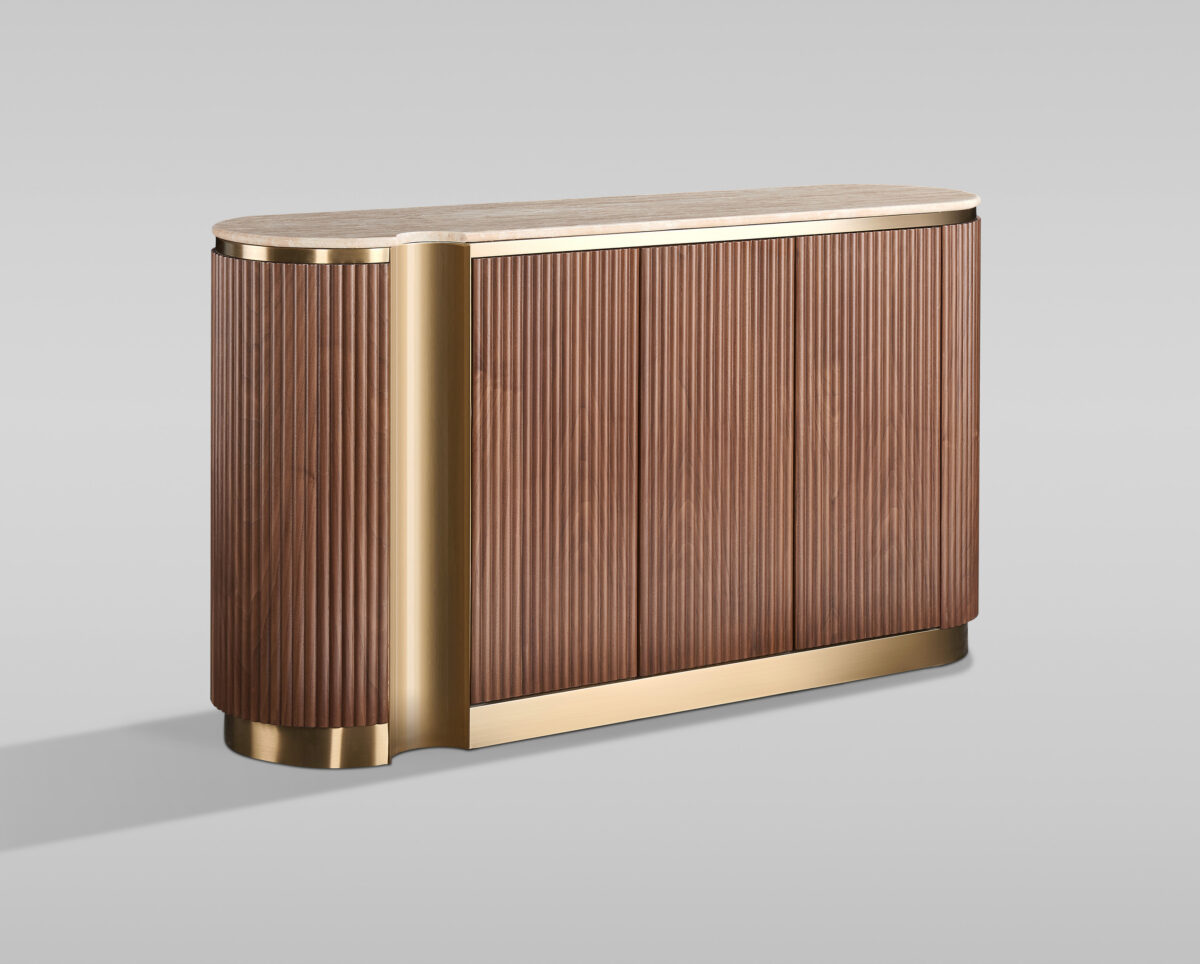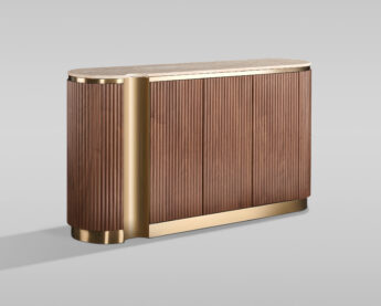 - Kummut on soonelise mustriga MDF-ist ja travertiinkattega, lisades elegantsi