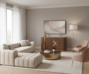 - Stiilne pähklitooni puhvetkummut, millel on kuldsed aktsendid ja kuldne alus