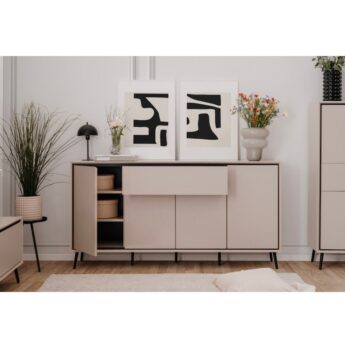 Kogu sarja mööbel on valmistatud 18 mm mööbliplaadist, capuccino viimistluses. Puhvetkummut pakub maksimaalselt hoiuruumi. Jalad plastikust, kõrgusega 16 cm. Ustel soft-close süsteem. Käepidemed metallist.