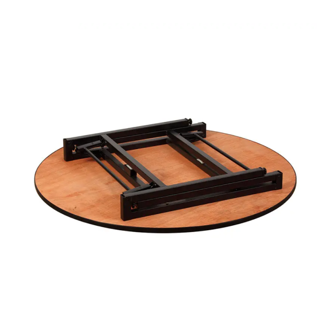 Tugev, vastupidav ja kvaliteetne ümmargune laud, millel on kokkupandavad terasjalad ja PVC-ga kaetud puidust lauaplaat. Lauajalad lukustuvad laua ülesseadmisel, tagades stabiilse seisuasendi. Jalad on valmistatud kvaliteetsest ja tugevast paksust terasest, mis on värvitud mustaks. Kergesti kokkupandavad jalad muudavad lauad väga kergesti hoiustatavateks. Lauad saab üksteise peale virna laduda, et säästa veelgi rohkem hoiuruumi. Lauad saad kiiresti mis tahes ruumis üles seada ja luua oma külalistele suurepärase istumisala. Need lauad on väga populaarsed turismitaludes, bankettidel, hotellides ja üritustel.