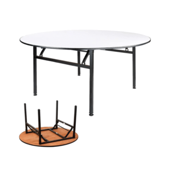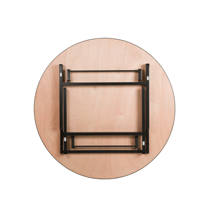 Tugev, vastupidav ja kvaliteetne ümmargune laud, millel on kokkupandavad terasjalad ja PVC-ga kaetud puidust lauaplaat. Lauajalad lukustuvad laua ülesseadmisel, tagades stabiilse seisuasendi. Jalad on valmistatud kvaliteetsest ja tugevast paksust terasest, mis on värvitud mustaks. Kergesti kokkupandavad jalad muudavad lauad väga kergesti hoiustatavateks. Lauad saab üksteise peale virna laduda, et säästa veelgi rohkem hoiuruumi. Lauad saad kiiresti mis tahes ruumis üles seada ja luua oma külalistele suurepärase istumisala. Need lauad on väga populaarsed turismitaludes, bankettidel, hotellides ja üritustel.