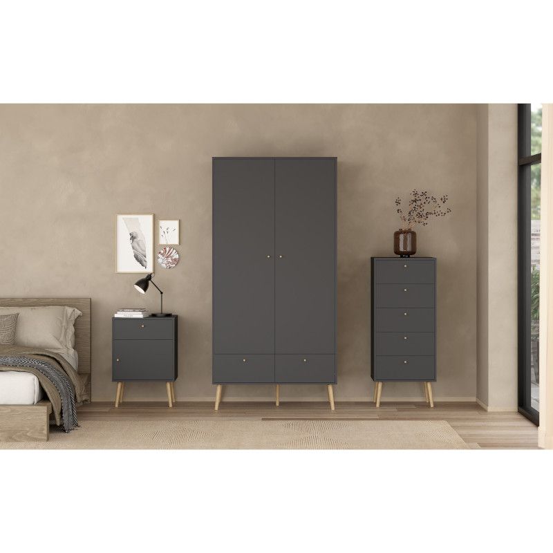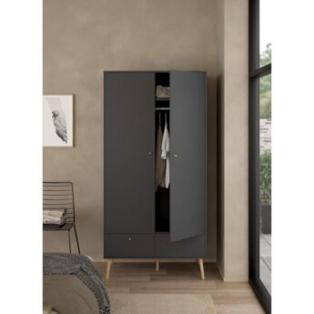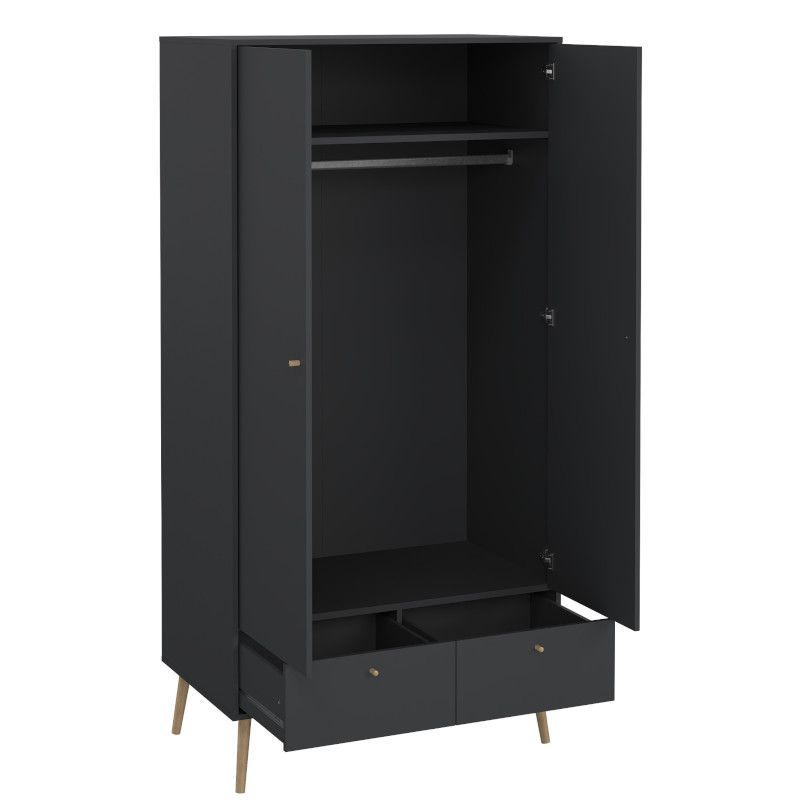 Kogu sarja mööbel on valmistatud mööbliplaadist ning see on saadaval kahes viimistluses- valge ja matt hall. Jalad ning käepidemed on tammepuidust. Riidekapp on kahe uksega, mille taga ülemises osas üks fikseeritud vaheriiul ning riidepuutoru. Alumises osas kaks sahtlit. Jalgade kõrgus 20 cm.
