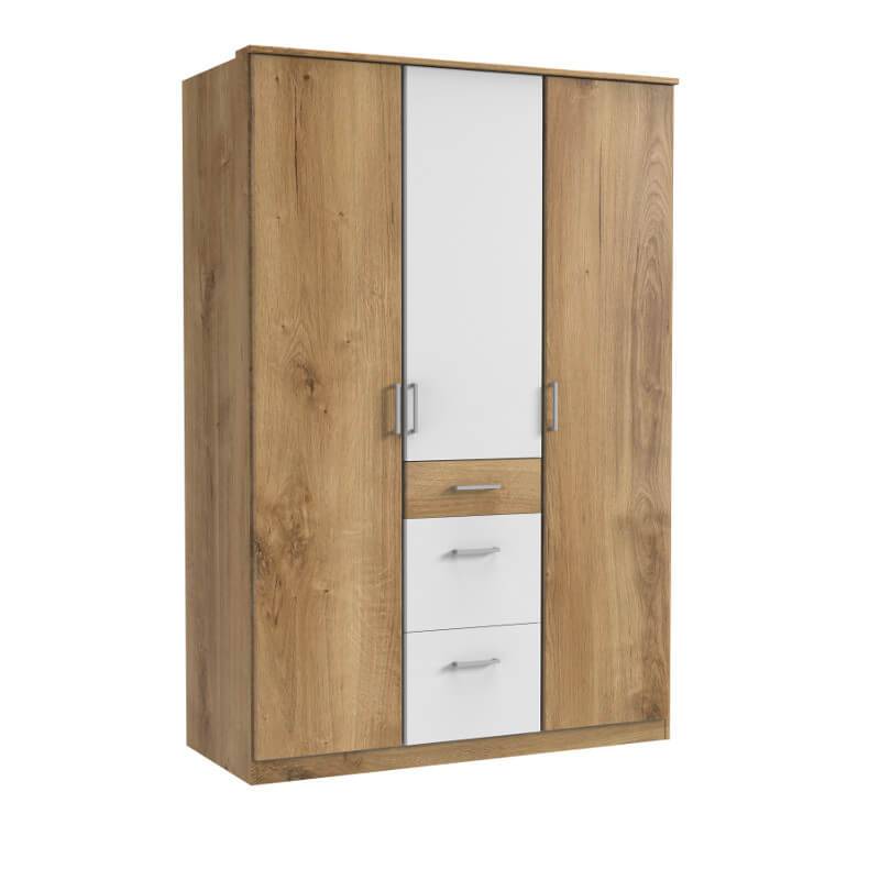 Kolme kapiuksega ja kolme sahtliga riidekapp