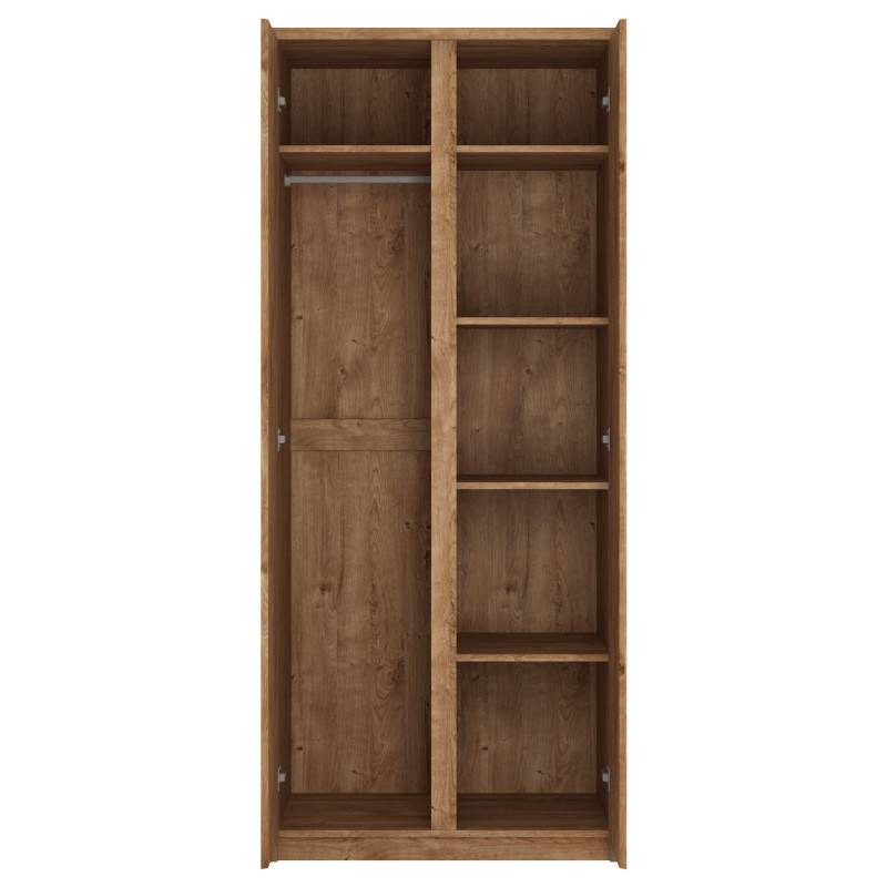 Kogu sarja mööbel on valmistatud lamineeritud puitlaastplaadist, mis on vastupidav mehaanilistele kahjustustele. Riidekapil on riidepuutoru ja riiulid, mida saate kasutada erinevate rõivaesemete hoidmiseks. Lihtne universaalne disain on muretu ja loob hubase atmosfääri.