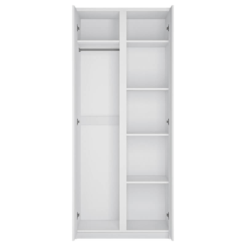 Kogu sarja mööbel on valmistatud lamineeritud puitlaastplaadist, mis on vastupidav mehaanilistele kahjustustele. Riidekapil on riidepuutoru ja riiulid, mida saate kasutada erinevate rõivaesemete hoidmiseks. Lihtne universaalne disain on muretu ja loob hubase atmosfääri.
