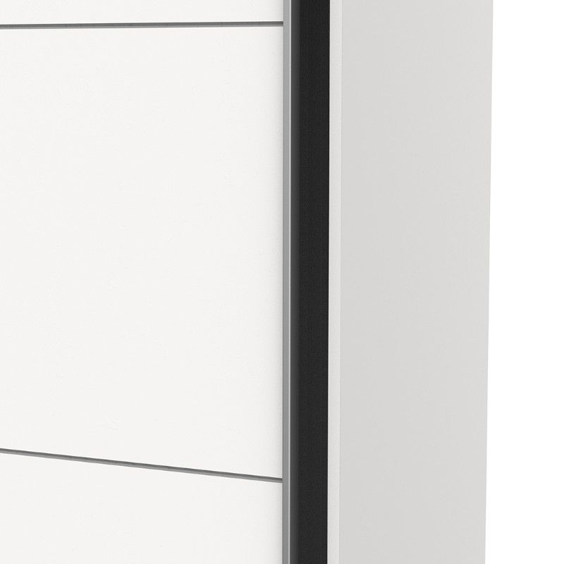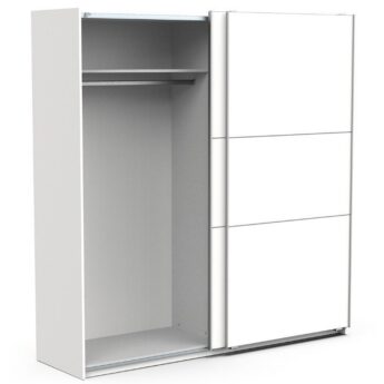 Riidekapp on valmistatud mööbliplaadist. Kahe lükandukse taga on mugav hoiuruum, mõlemal pool ülemises osas üks riiul ning riidepuutoru.