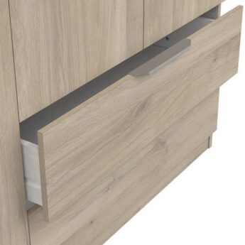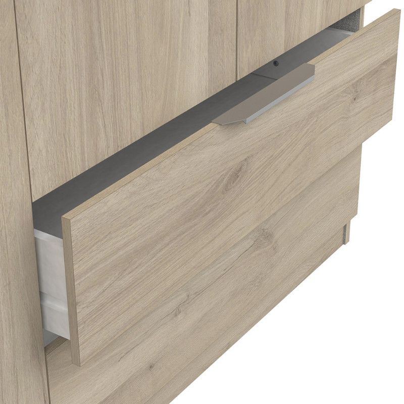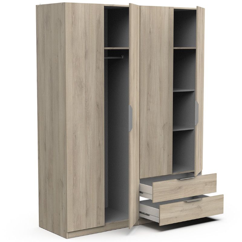 Riidekapp on valmistatud mööbliplaadist. Kapp on mahukas, see on jagatud kaheks osaks. Paremal pool uste taga on kolm vaheriiulit, vasakul pool üks vaheriiul ning riidepuutoru. Alumises osas kaks praktilist sahtlit.