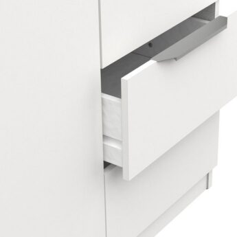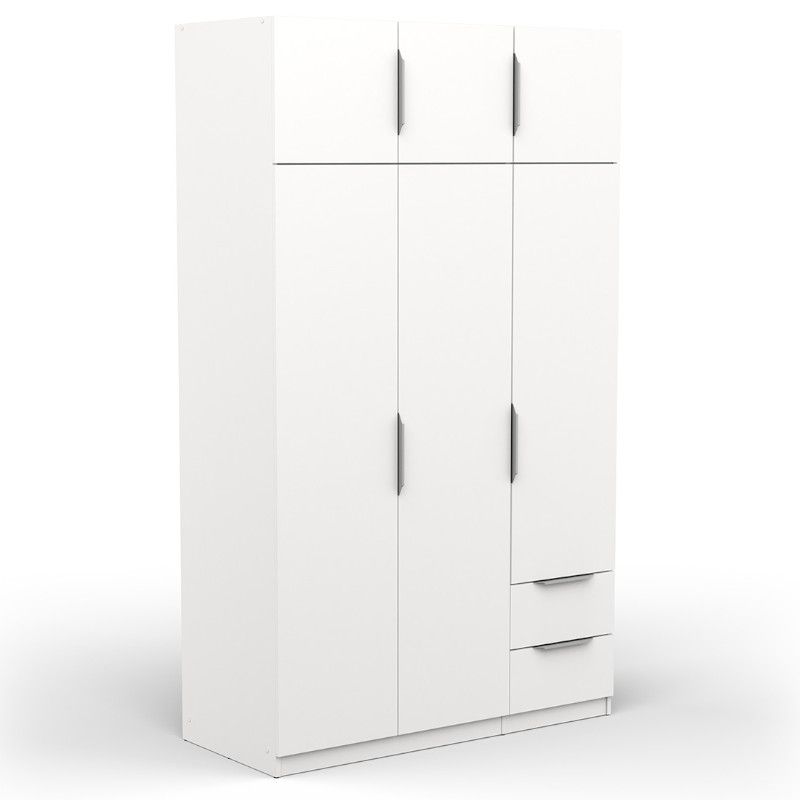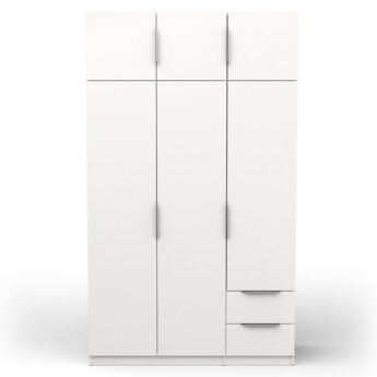 Riidekapp on valmistatud mööbliplaadist. Kapp on mahukas, paremal pool ukse taga on kaks vaheriiulit, vasakul pool uste taga üks vaheriiul ning riidepuutoru. Nende kohal kolme ukse taga samuti hoiuruum. Alumises osas kaks sahtlit.
