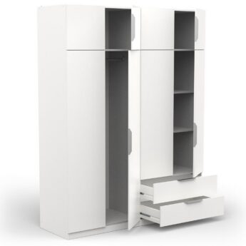 Riidekapp on valmistatud mööbliplaadist. Kapp on mahukas, see on jagatud kaheks osaks. Paremal pool uste taga on kolm vaheriiulit, vasakul pool üks vaheriiul ning riidepuutoru. Ülemises osas uste taga hoiuruum. Alumises osas kaks praktilist sahtlit.