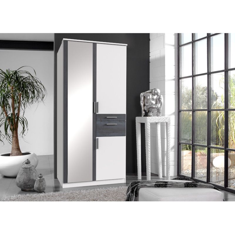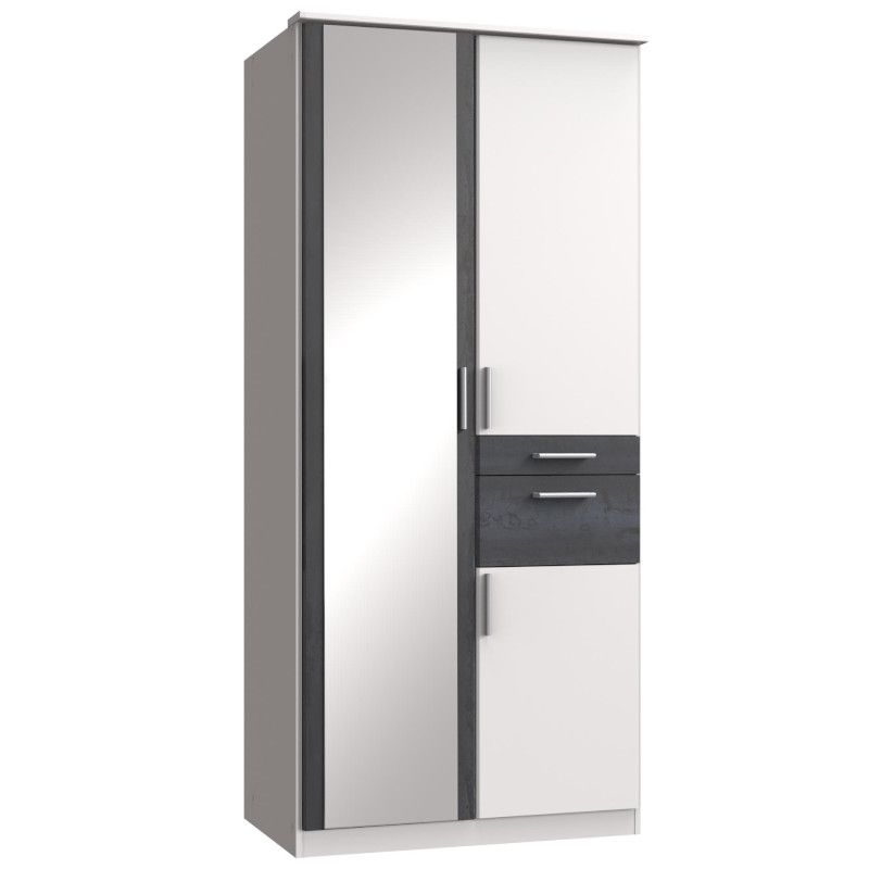 Riidekapp on valmistatud vastupidavast mööbliplaadist ning on viimistletud digiterase ja valgega. Riidekapp on kolme uksega. Peegelukse taga on mugavaks riiete hoiustamiseks üks vaheriiul ning riidepuu toru. Kahe väiksema ukse vahele jäävad kaks sahtlit, mis annab hea võimaluse hoiustada pisemad asju mugavalt. Ülemise ukse taga on riidepuutoru ning alumise ukse taga üks vaheriiul. Kapi käepidemed on valmistatud plastikust.
