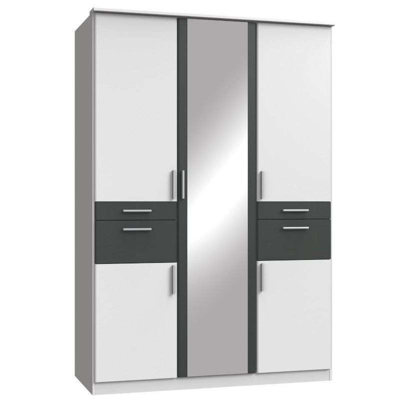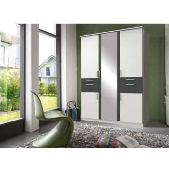 Riidekapp on valmistatud vastupidavast mööbliplaadist ning on viimistletud grafiit halliga ning valgega. Riidekapp on nelja uksega. Keskmise peegelukse taga on mugavaks riiete hoiustamiseks üks vaheriiul ning riidepuu toru. Kahe väiksema ukse vahele jäävad kaks sahtlit, mis annab hea võimaluse hoiustada pisemad asju mugavalt. Ülemise ukse taga on riidepuutoru ning alumise ukse taga üks vaheriiul. Kapi käepidemed on valmistatud plastikust.