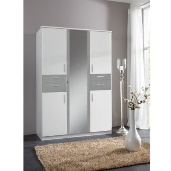 Riidekapp on valmistatud vastupidavast mööbliplaadist ning on viimistletud helehalliga ning valgega. Riidekapp on nelja uksega. Keskmise peegelukse taga on mugavaks riiete hoiustamiseks üks vaheriiul ning riidepuu toru. Kahe väiksema ukse vahele jäävad kaks sahtlit, mis annab hea võimaluse hoiustada pisemad asju mugavalt. Ülemise ukse taga on riidepuutoru ning alumise ukse taga üks vaheriiul. Kapi käepidemed on valmistatud plastikust.