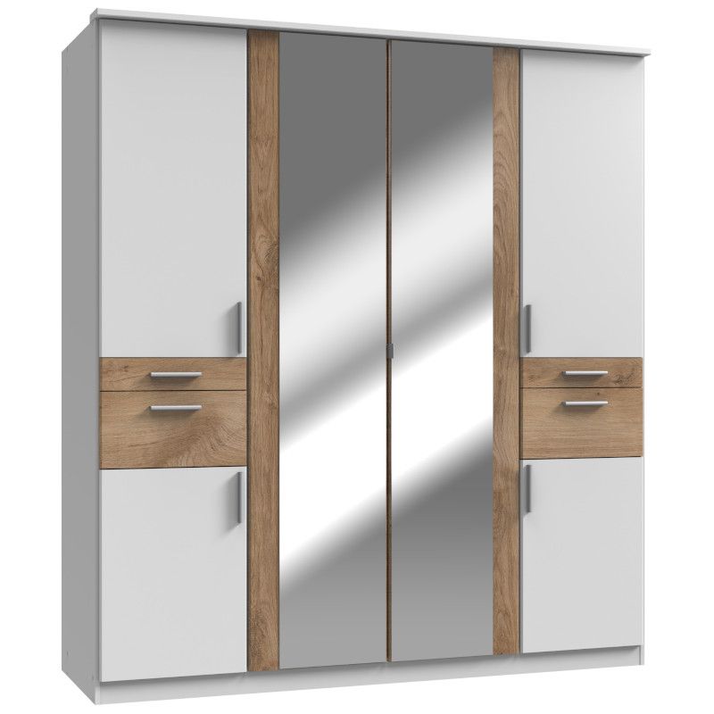 Riidekapp on valmistatud vastupidavast mööbliplaadist ning on viimistletud tammeplangu imitatsiooniga ning valgega. Riidekapp on nelja uksega. Keskmise ukse taga on mugavaks riiete hoiustamiseks üks vaheriiul ning riidepuu toru. Kahe väiksema ukse vahele jäävad kaks sahtlit, mis annab hea võimaluse hoiustada pisemad asju mugavalt. Ülemise ukse taga on riidepuutoru ning alumise ukse taga üks vaheriiul. Kapi käepidemed on valmistatud plastikust.