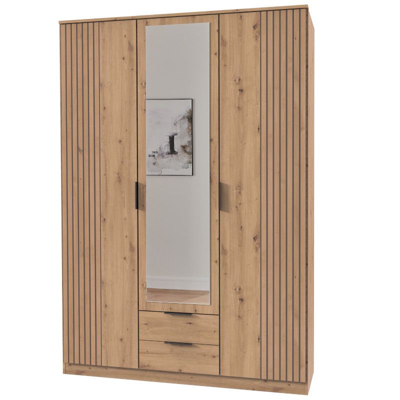 Kogu sarja mööbel on valmistatud vastupidavast mööbliplaadist. Riidekapid on saadaval erinevas dekooris, võimaldades valida sobiv vastavalt oma maitsele ja kodu stiilile. Kapp on jagatud kaheks osaks, paremal pool kolm vaheriiulit. Vasakul pool ülemises osas üks vaheriiul ja üks riidepuutoru, alumises osas kaks metallsiinidel liikuvat sahtlit. Keskel praktiline peegel.