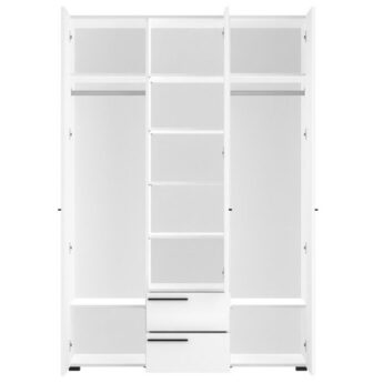 Kogu sarja mööbel on valmistatud mööbliplaadist, valges toonis. Riidekapiga hoiate end organiseeritult – interjöör on kujundatud nii, et kõigele oleks sobiv koht. Maksimaalne koormus igale riiulile on 5 kg. Maksimaalne koormus igale sahtlile on 3 kg. Käepidemed ning jalad on plastikust.