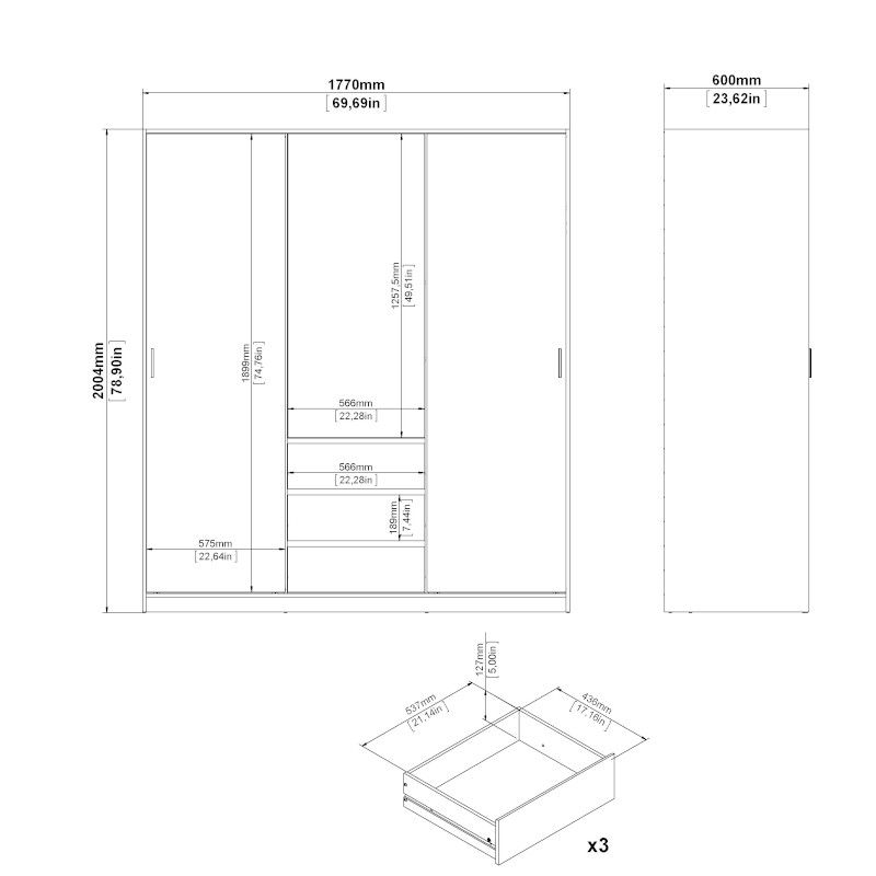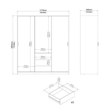 Kogu sarja mööbel on valmistatud mööbliplaadist ning on saadaval erinevate viimistlustega. Riidekapil on kolm metallsiinidel liikuvat sahtlit. Nende kohal oleva ukse taga on kolme vaheriiulit. Mõlemal pool on kaks lükandust, mille taga ülemises osas üks vaheriiul ja riidepuutoru.