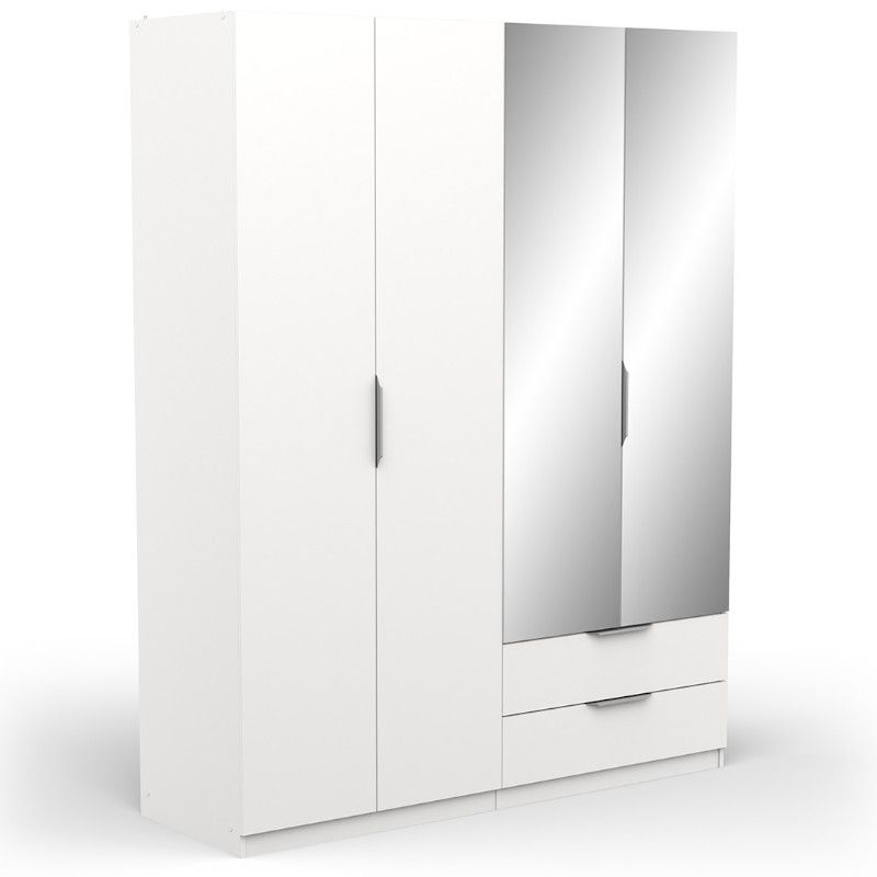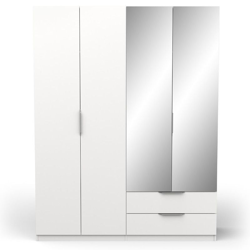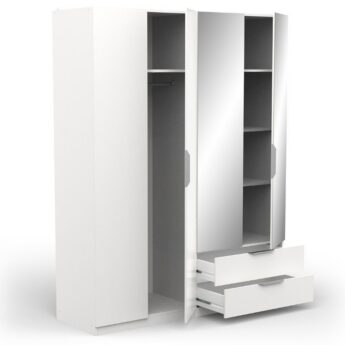 Riidekapp on valmistatud mööbliplaadist. Kapp on mahukas, see on jagatud kaheks osaks. Paremal pool uste taga on kolm vaheriiulit, vasakul pool üks vaheriiul ning riidepuutoru. Alumises osas kaks sahtlit. Kahel uksel olevad peeglid annavad visuaalset avarust ning on praktilised.