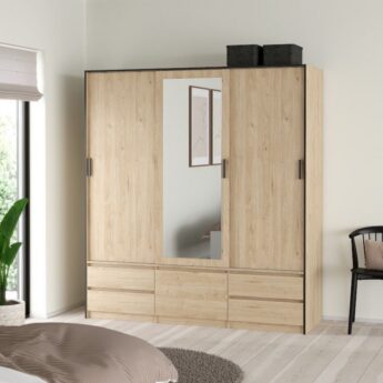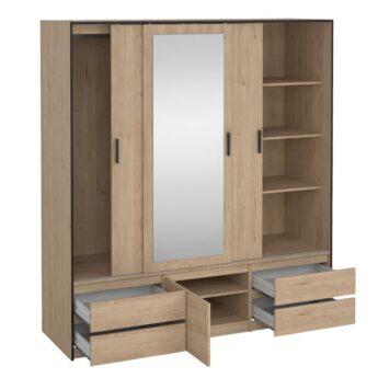 Kogu sarja mööbel on valmistatud kvaliteetsest mööbliplaadist. Kapp on jaotatud kaheks osaks, vasakul pool riidepuutoru ning paremal kolm vaheriiulit. Alumises osas neli metallsiinidel liikuvat sahtlit ning üks uks. Keskmise ukse küljes mugav peegel.