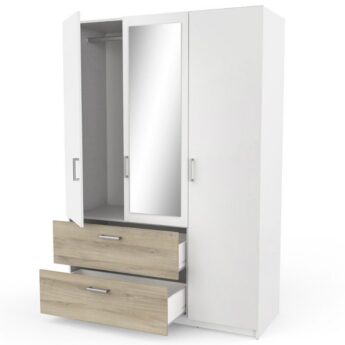 Riidekapp peegliga Ready2 3u2s kronbergi tamm/valge