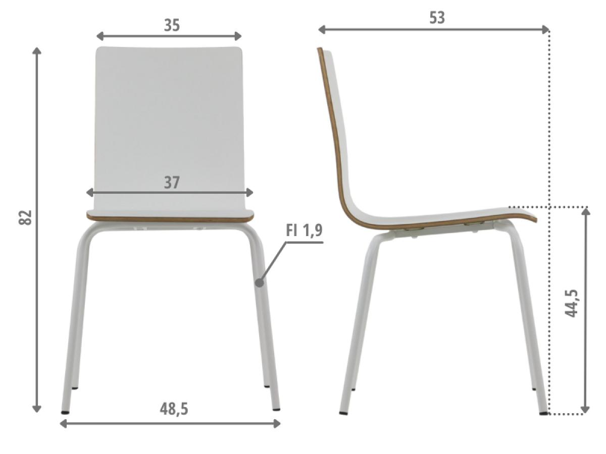 - Tooli jalad on metallist, kaetud valge pulbervärviga