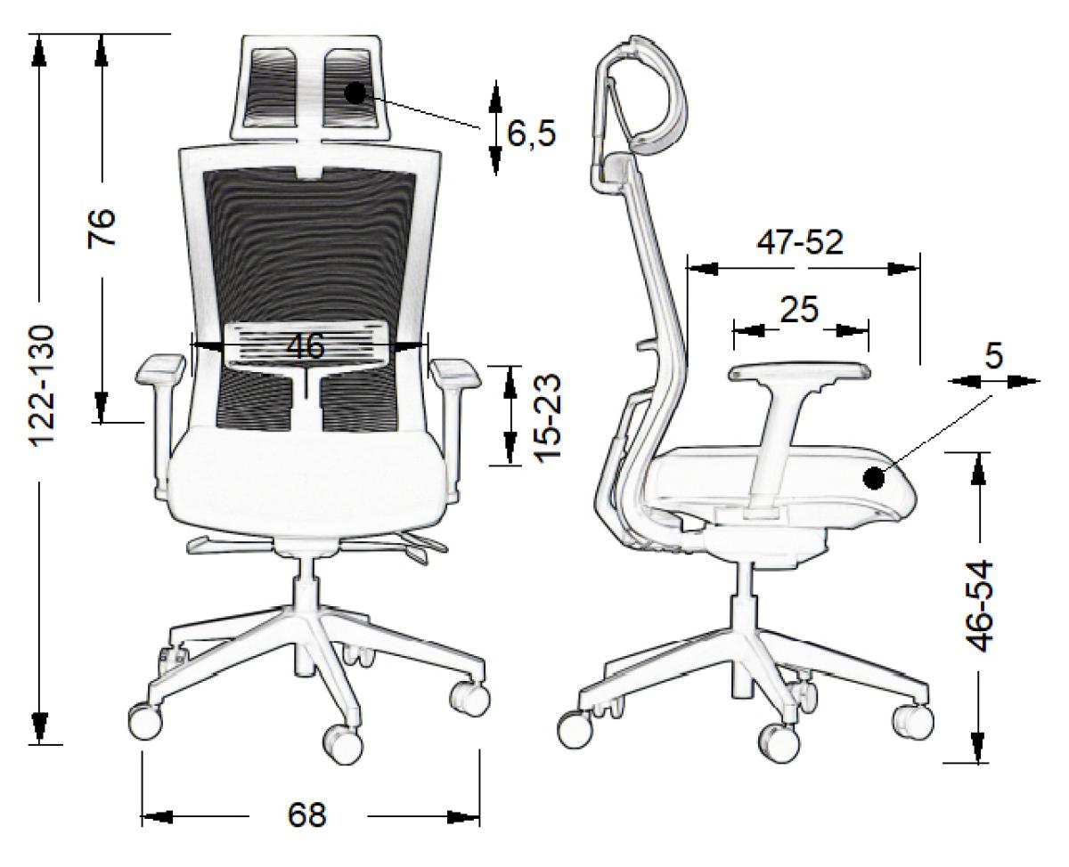 - reguleeritavad käetoed (üles ja alla) pehmete (polüuretaanist) padjanditega