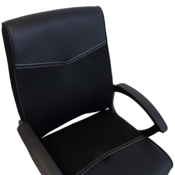 Tooli kergelt polsterdatud iste ja seljatugi on kaetud kunstnaha ja polüestervõrkkangaga.