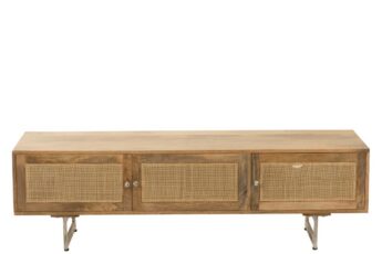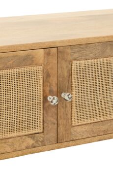 - Moodne tv-alus on valmistatud mangopuidust ja rotangist