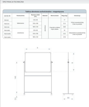 Valge tahvel ratastel 2000x1200mm kahepoolne ümber telje pöörlev lakitud pind 2×3